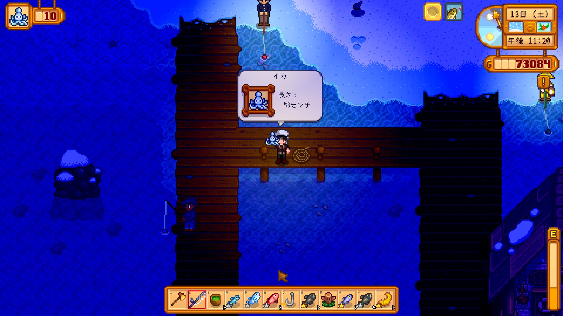 去年は辛酸を舐めたイカ釣り大会ですが、釣りレベル9・イリジウム釣竿・しかけウキ・デラックスえさ持ちの今年の私に死角はねえ!