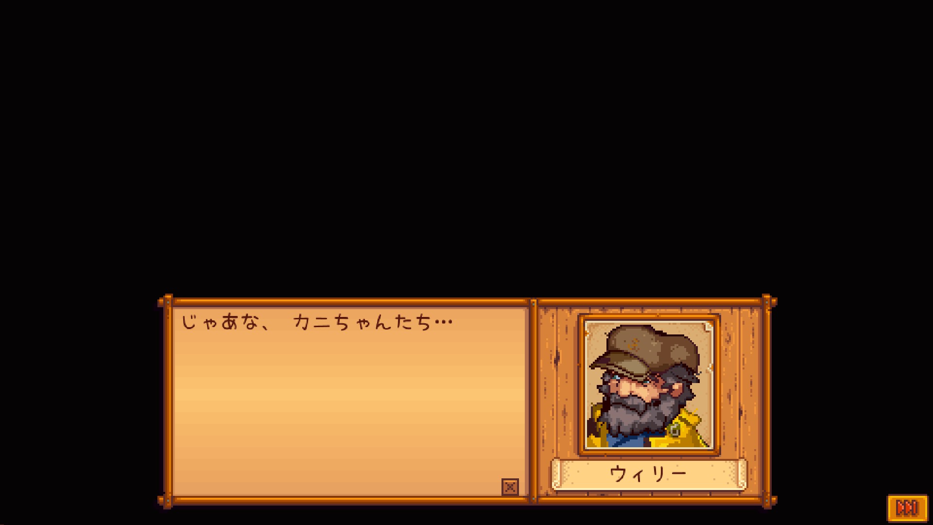 釣ったイカをウィリーに届け、今更ながら無期限クエスト「イカ釣り」をクリア。