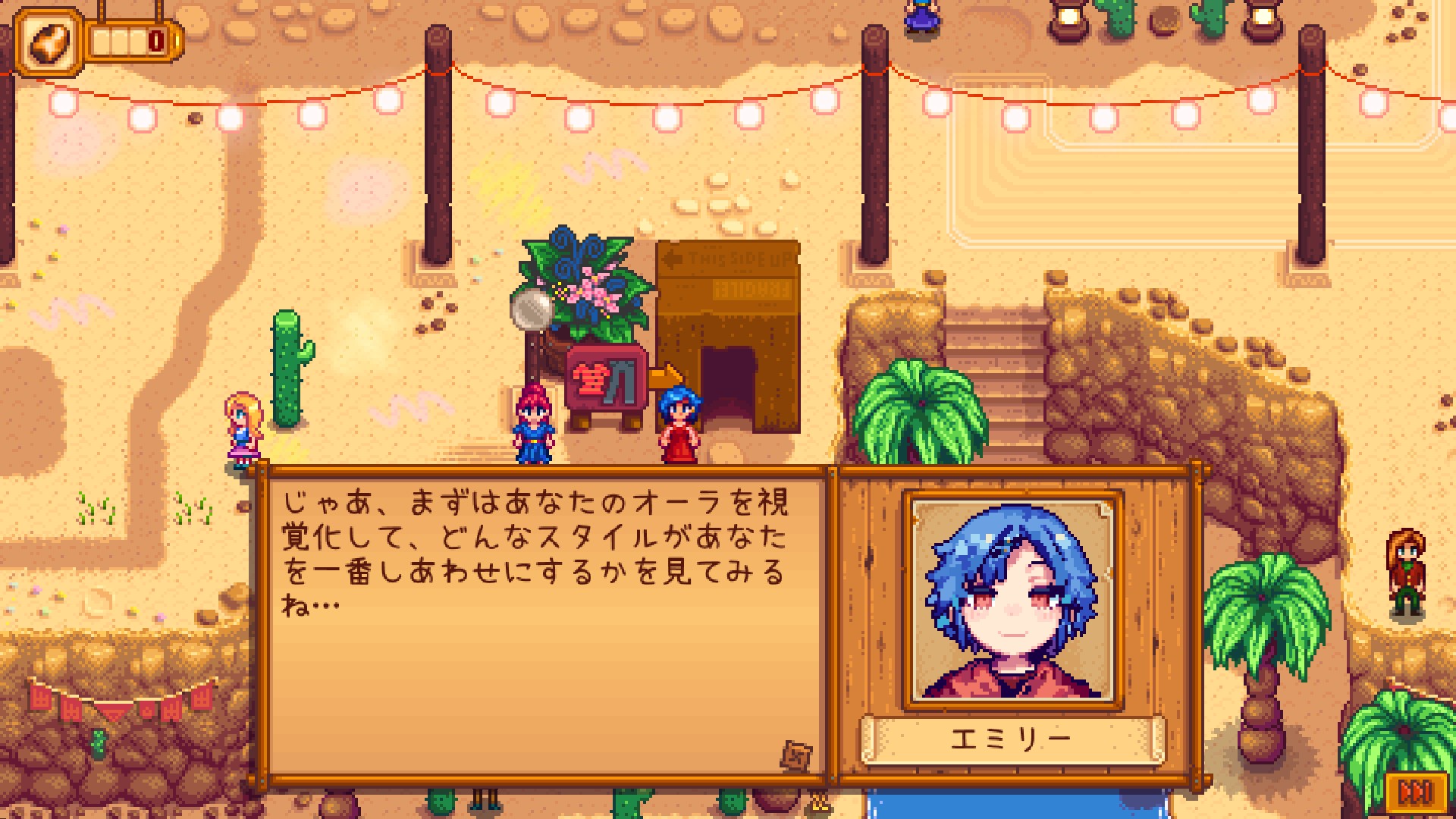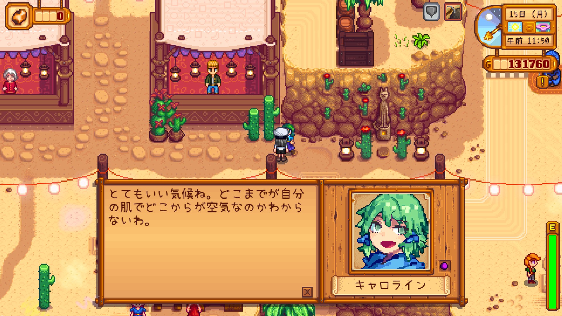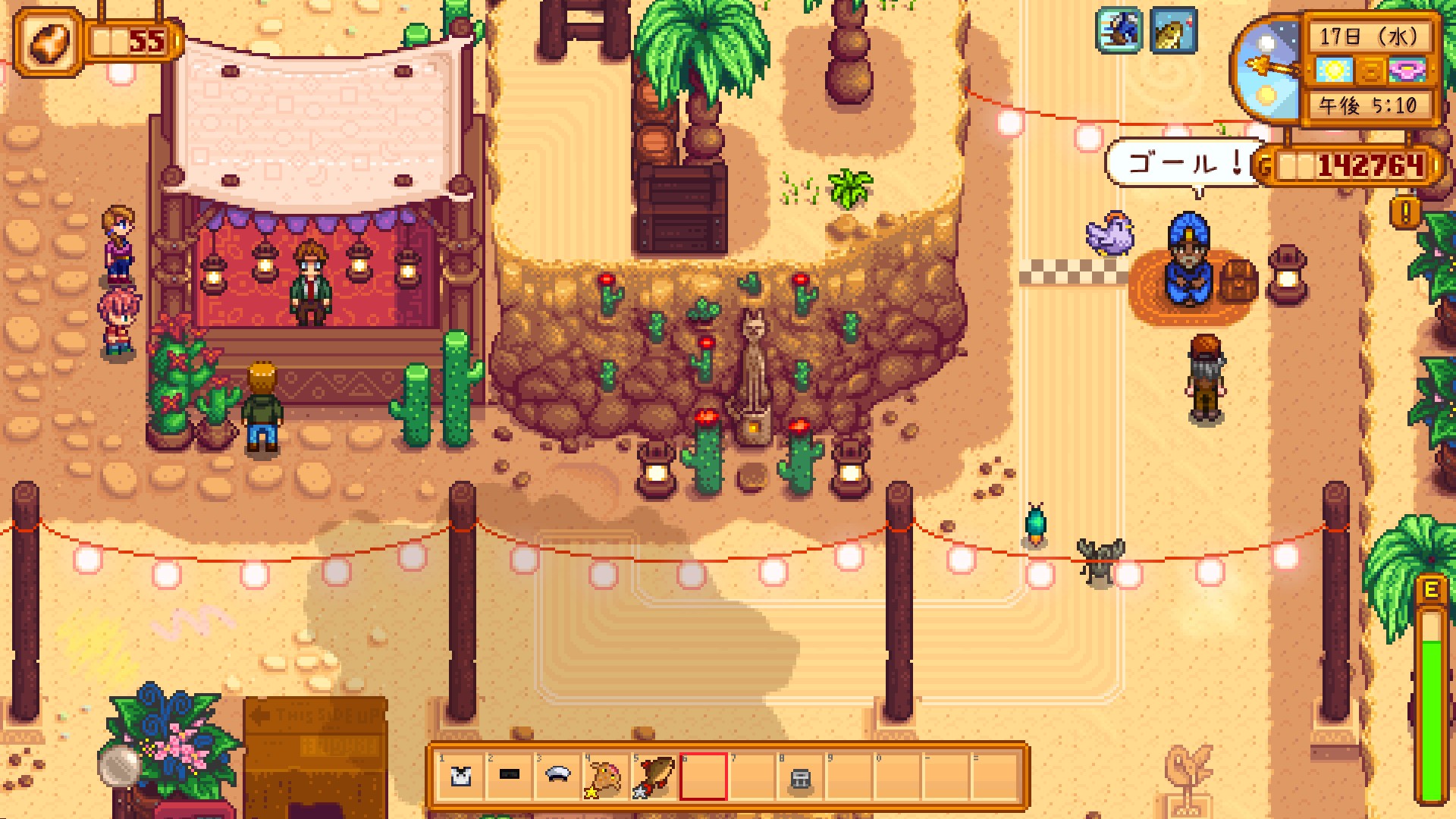 谷のほぼ全員が総動員されてるし、お店やミニゲームも凝っててとても良い。普段は荒涼としてる砂漠にわらわら出し物が置いてあるのが目新しいですね。