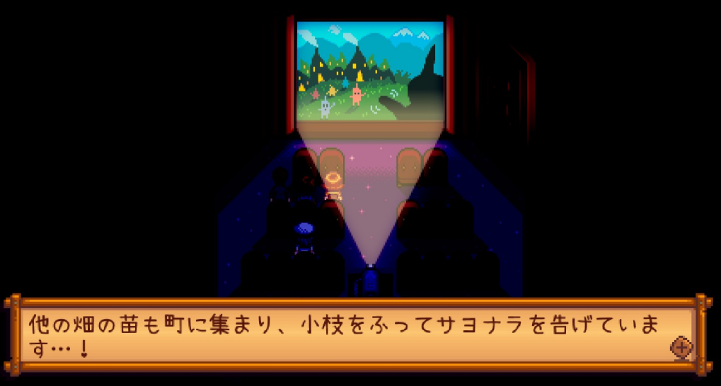 そしたら跡地に映画館が爆誕。スタバレのサントラに「Movie Theater」なるタイトルの曲が入ってたので、へー映画館に行けるようになるんだ、バスにでも乗って行くのかな?とか思ってたんですが…ここが映画館になるのか。店員さんはどこからやってきたんだ。