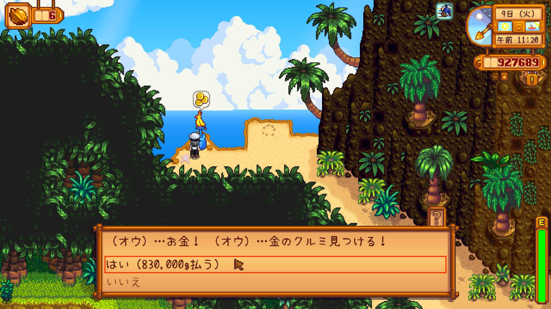 このゲームを始めてからずっと楽しかったけど、金のクルミ集めだけは本当に、本っ当につまんないです。マジで何を思ってこの攻略サイト前提の苦行要素入れたのか教えてほしい。でもこのゲームは親切だからね、ちゃんと救済があるんですよ。