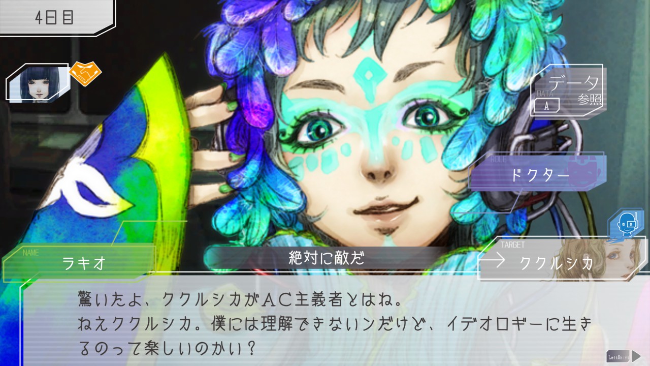 もしくは本当の本当に一切感情に流されないAIとして作られていればそれが特色になり得た。しかし実際のところはラキオは好きな色を青に設定しない限り、夕里子に次いで「仲の悪い人」に出やすい設定のようなので(→ソース)、ぜんぜん感情に流されとるやないケーっ