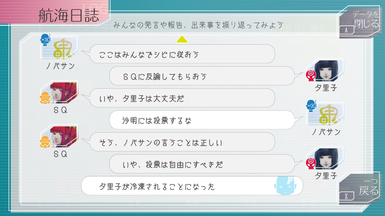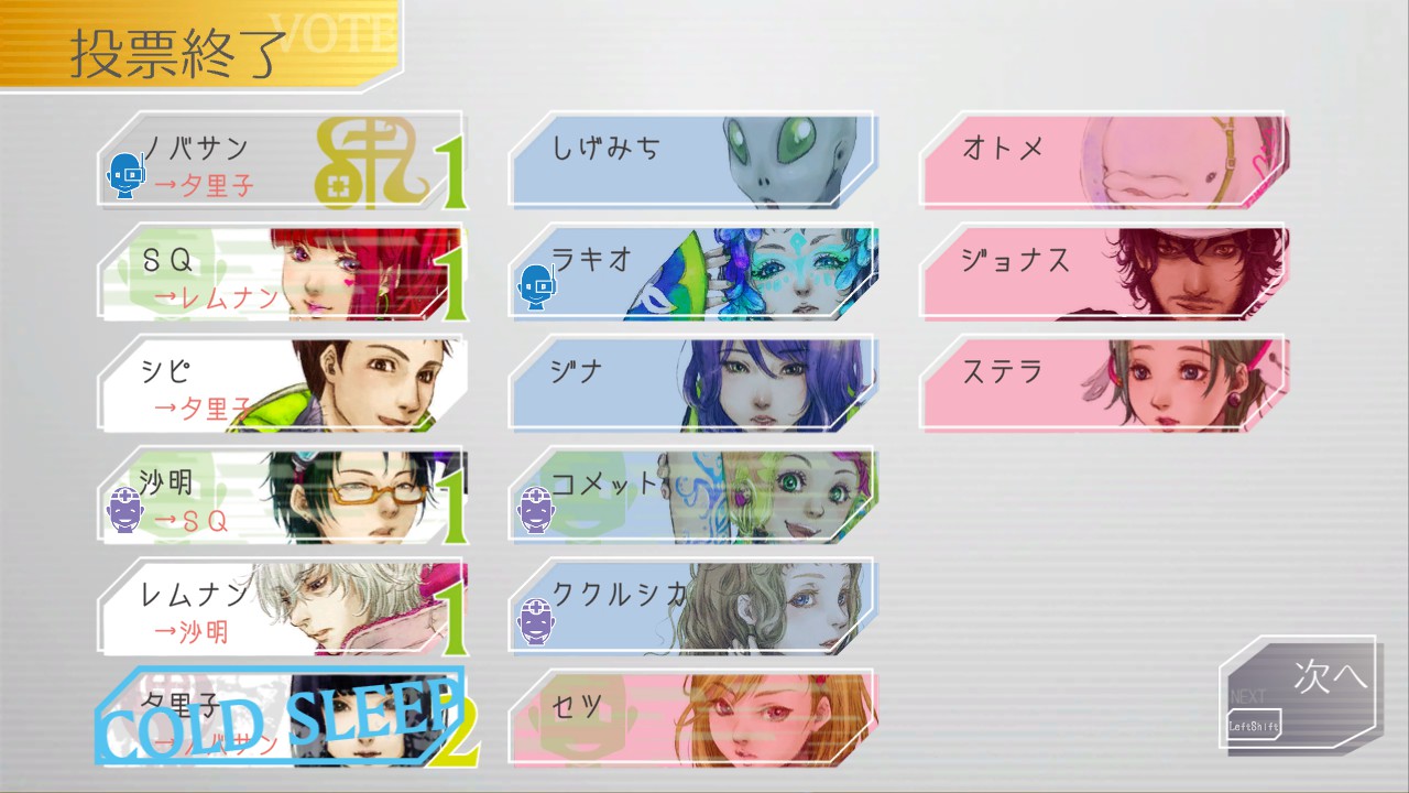 その後、5日目までにグノーシア側のジナ・ラキオは冷凍できたものの、防御力弱めのしげみちとコメットも夕里子にボコられ冷凍されてしまう。やっぱり夕里子さんはすごい