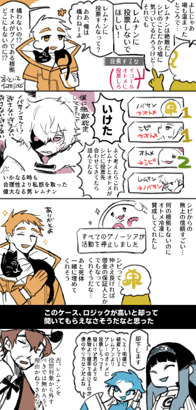 絶人2、破綻1、グレー1の状態を「投票するな」でなんとか言いくるめて勝利した回の話。